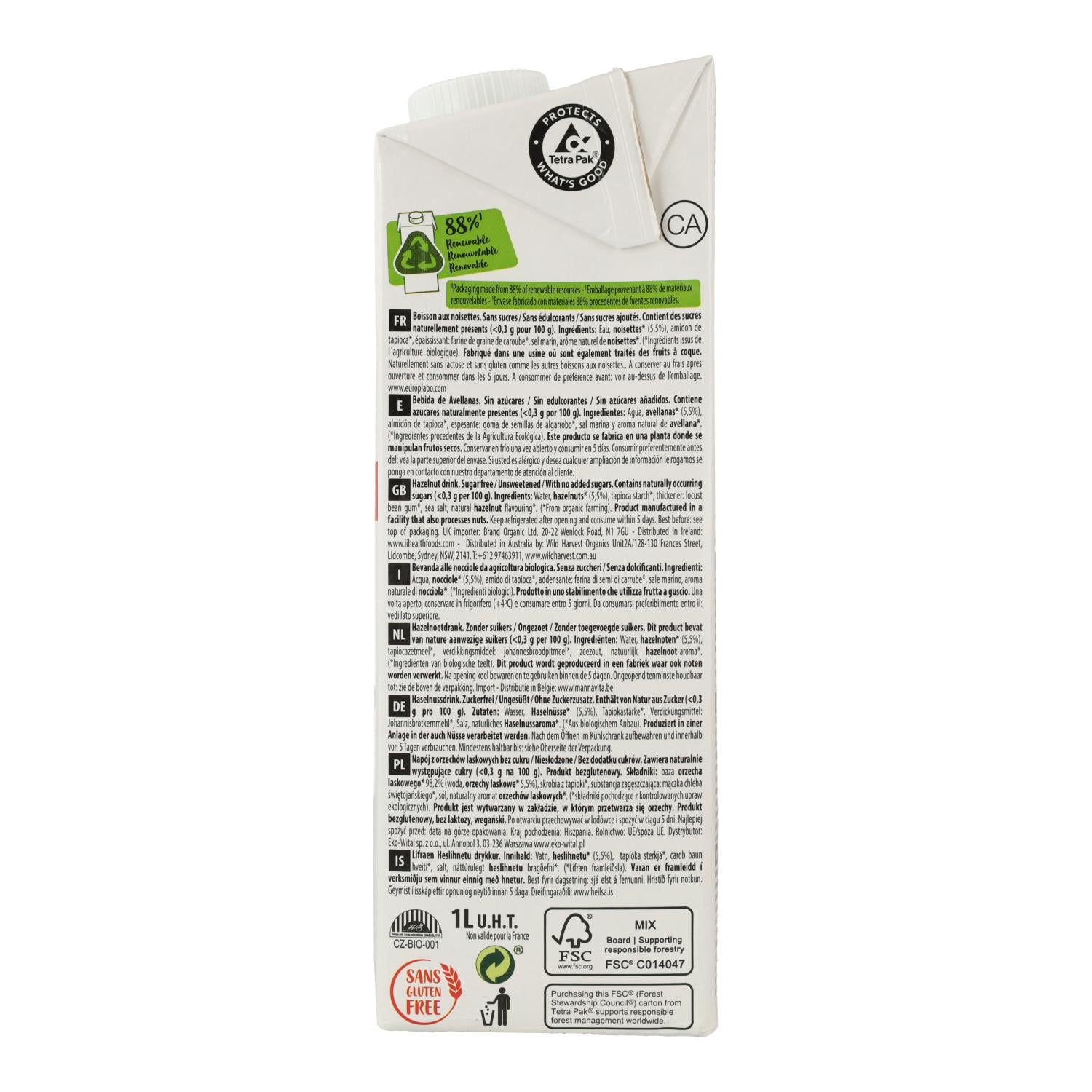 Bio-Pflanzenalternative zu Milch, hergestellt mit Haselnussbasis. Ideal für Menschen mit Laktoseintoleranz. Zöliakiebetroffene, Veganer oder Menschen, die ihren Zuckerkonsum reduzieren möchten Zusätze. Perfekt pur, in Kaffee, Smoothies, Desserts oder Rezepte.