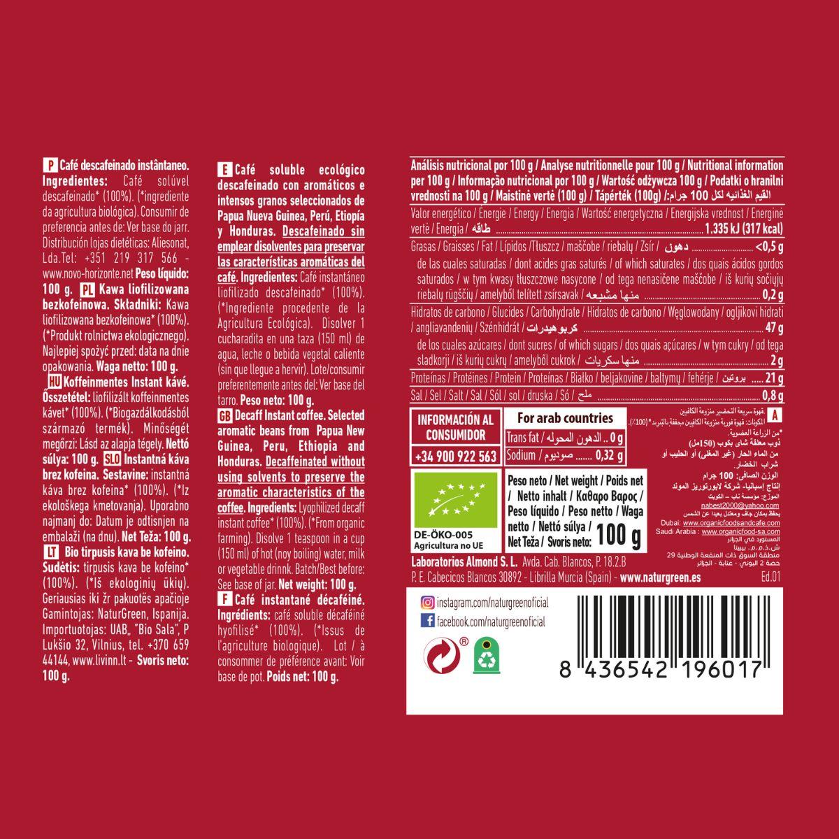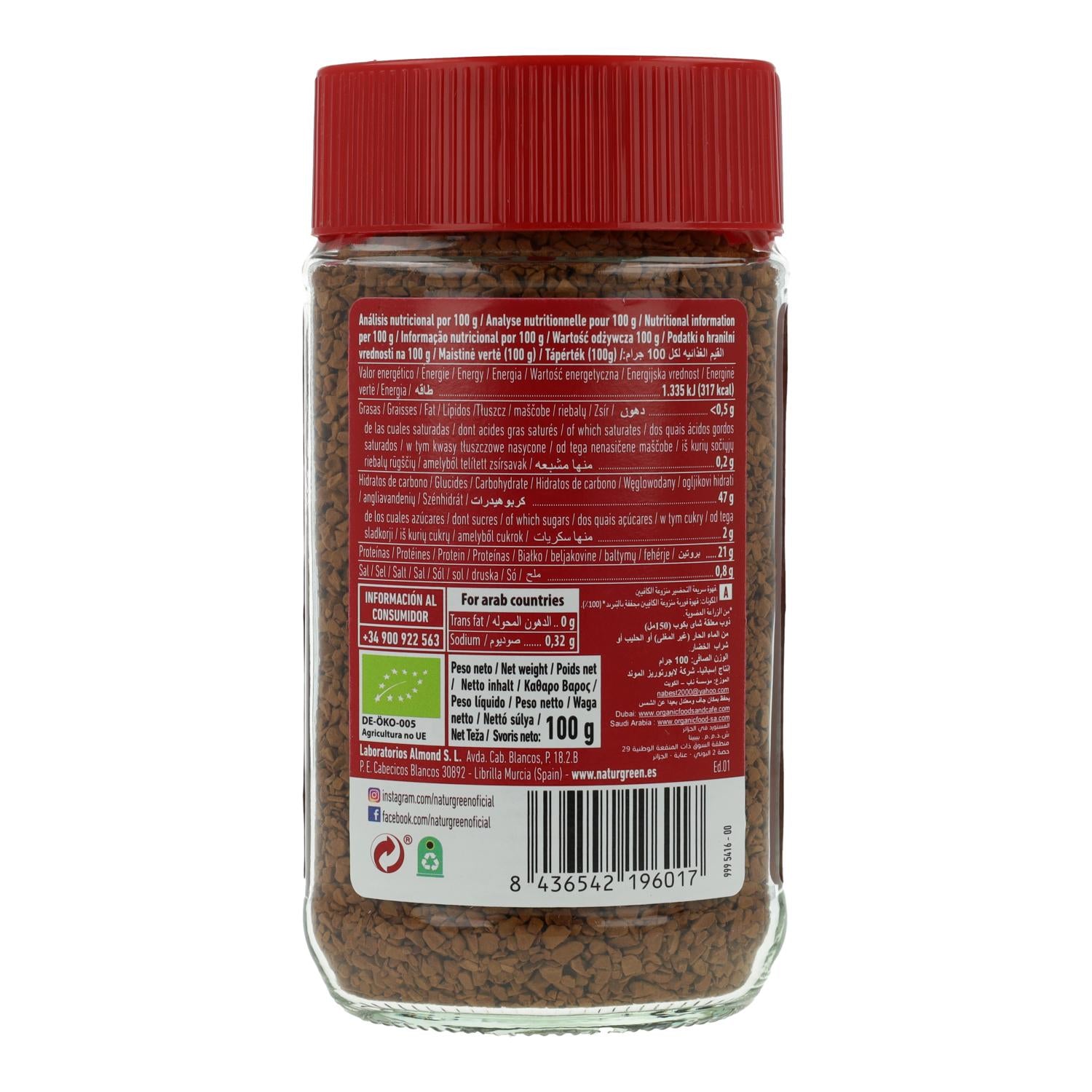 Alle Informationen über "Biocoffee NaturGreen Premium Bio-Instantkaffee, entkoffeiniert, 100 g"