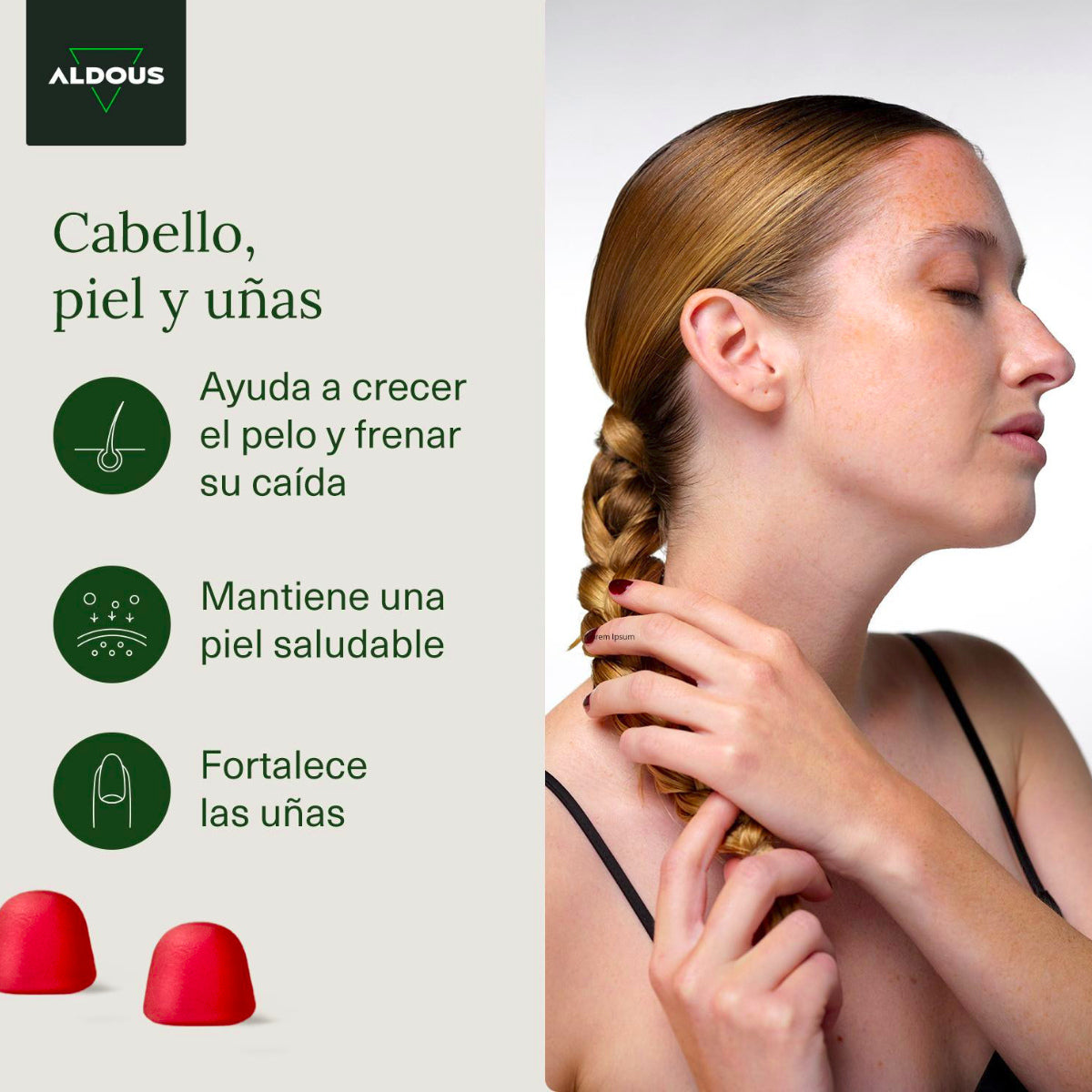 Verwöhnen Sie Ihr Haar von innen mit Aldous Biotin Gummies. Die fortschrittliche Formel enthält Vitamin A, Vitamin B5, Vitamin B6, Vitamin B12, Vitamin C, Vitamin D, Vitamin E, Folsäure, Jod, Selen und Zink und ist in einer Packung mit 120 Gummies für 120 Tage erhältlich.