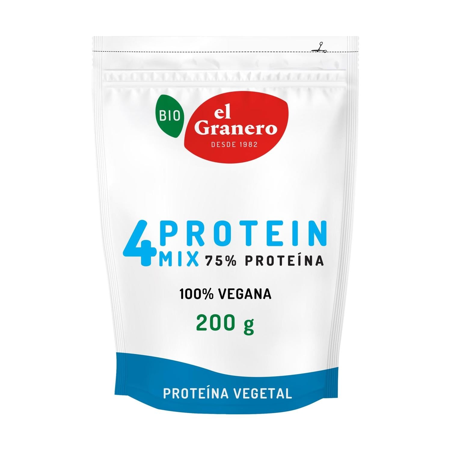 Bio-Proteinmischung (Erbsen, Reis, gerösteter Kürbis und Hanf) von El Granero Integral. Traditionell verwendet, trägt sie zur Deckung des körpereigenen Proteinbedarfs bei, insbesondere bei sportlicher Betätigung und veganer oder vegetarischer Ernährung.