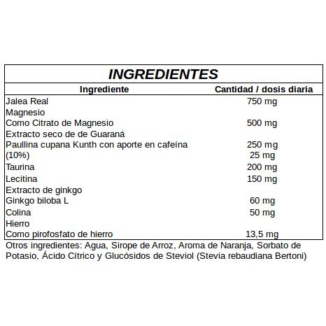 Vitalpur Estudio ist mit Eisen, Magnesium, Cholin, Lecithin und Taurin; zusätzlich zu Pflanzenextrakten aus Ginkgo Biloba und dem Guarana.
