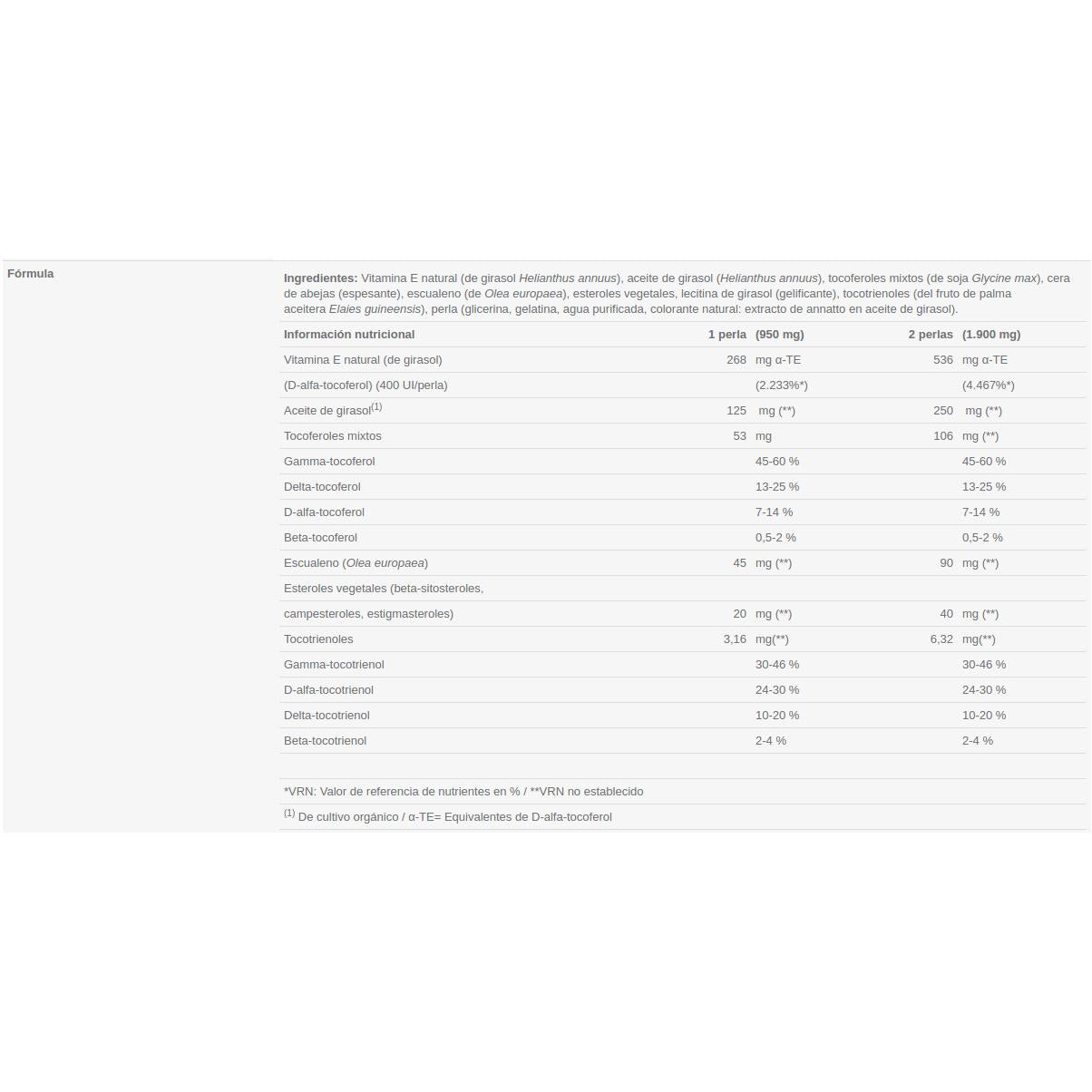 Vitamin E (D-alpha-Tocopherol), Trägeröl (Pflanzenöl), pflanzliche Kapsel, Trennmittel.