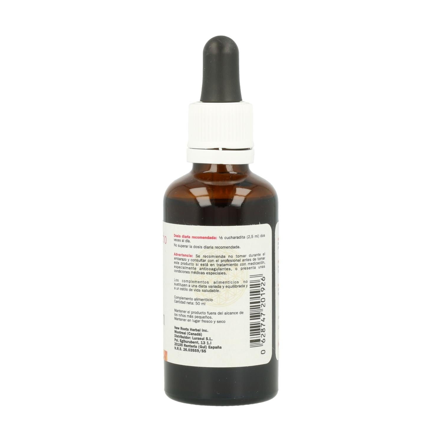 ½ cucharadita (2,5 ml) dos veces al día. Agitar antes de usar. Se recomienda no tomar durante el embarazo y consultar con el profesional antes de tomar este producto si está en tratamiento con medicación, especialmente anticoagulantes, o presenta unas condiciones médicas especiales.