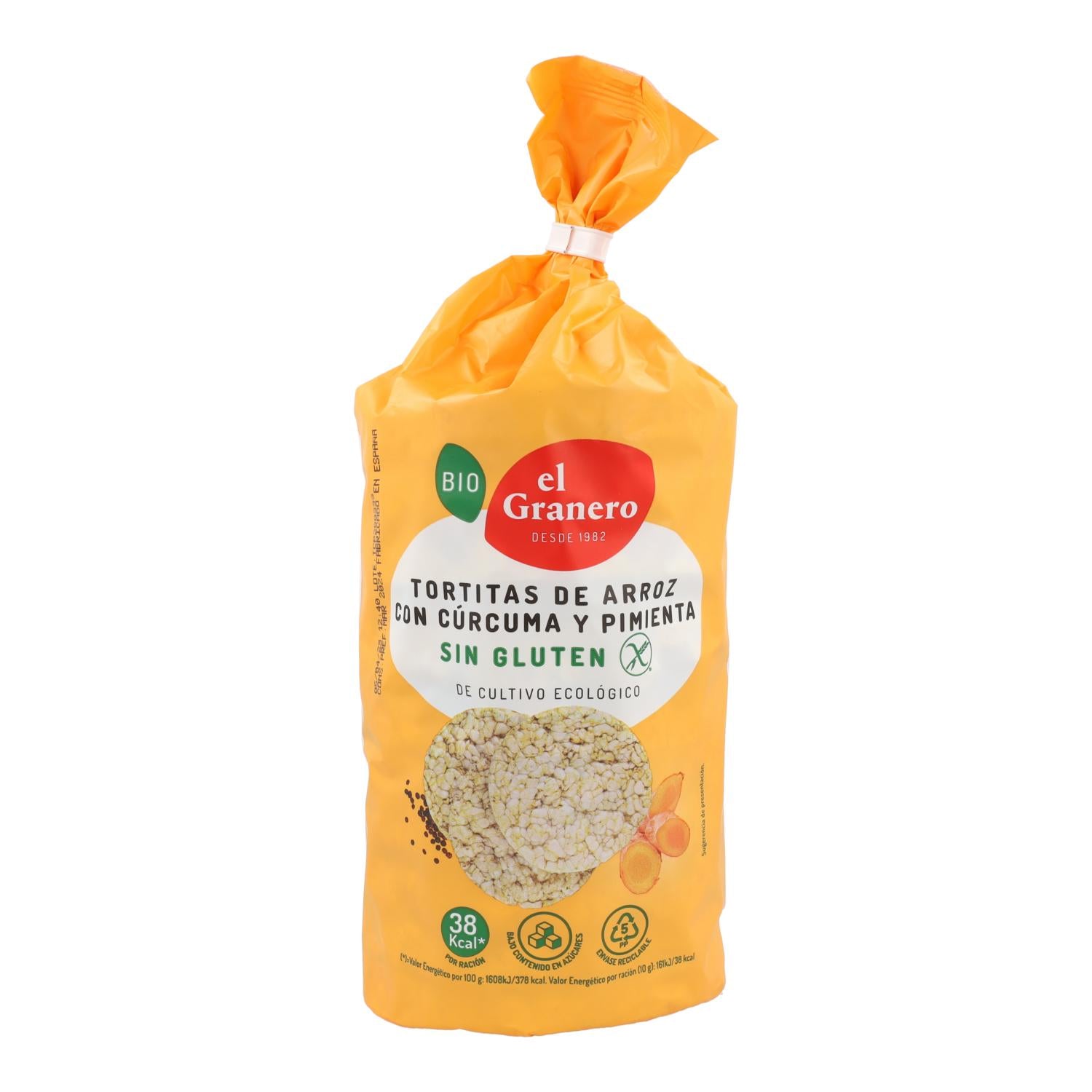 Toda la información sobre "Tortitas de Arroz con Cúrcuma y Pimienta Sin Gluten Bio El Granero, 115 g"