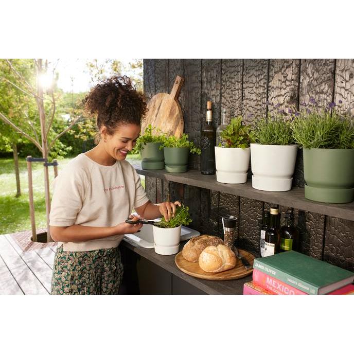 Toutes les informations sur "Pot de fleur avec soucoupe intégrée Greenville Elho blanc 30 cm"