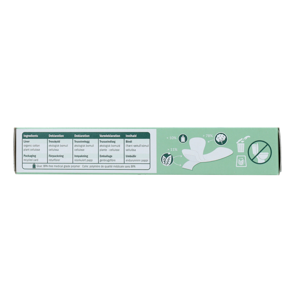 Protège-slip ultra-fin en coton 100% écologique avec une doublure extra-fine.