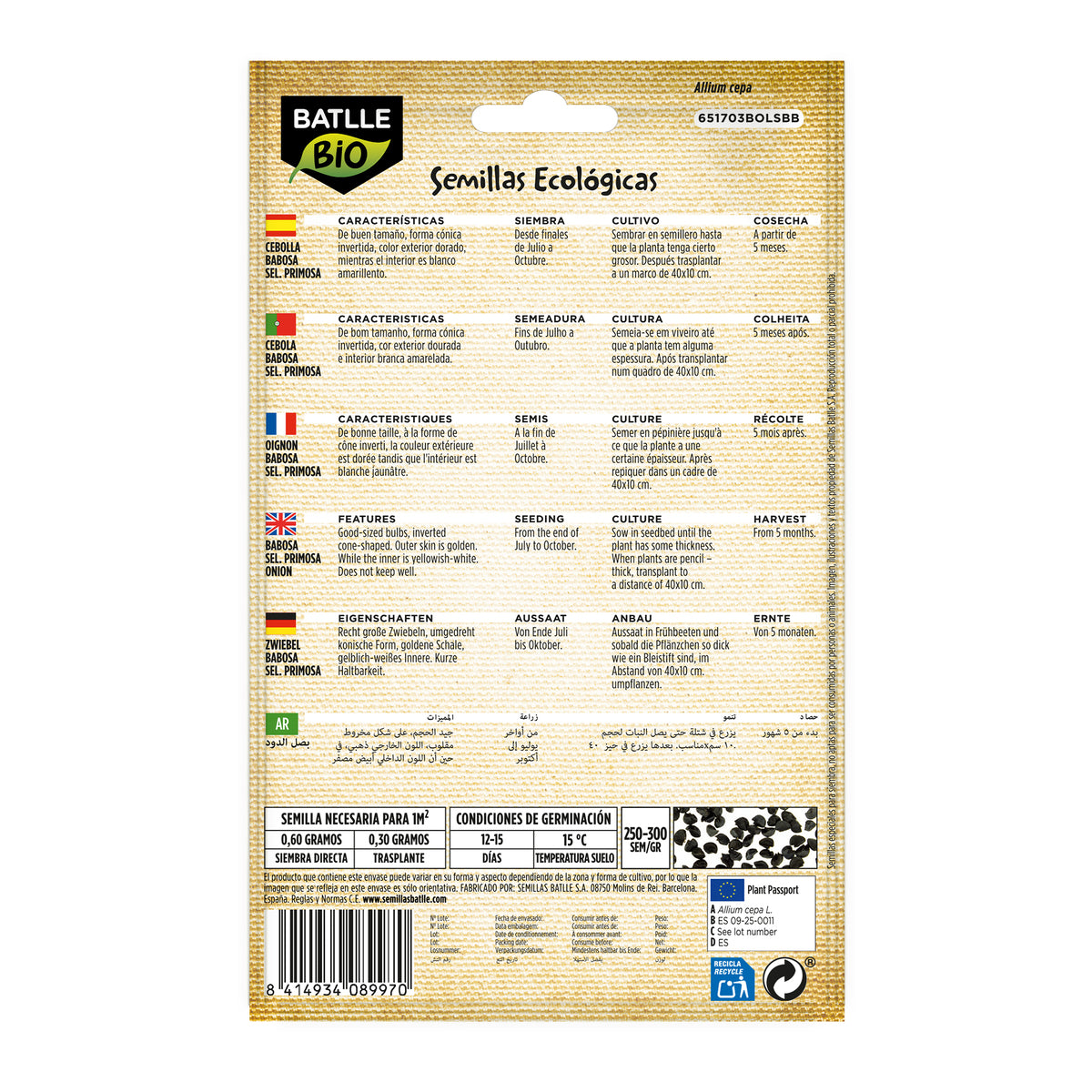 Toutes les informations sur "Graines d'oignon Babosa sélectionnées primosa écologiques Batlle"
