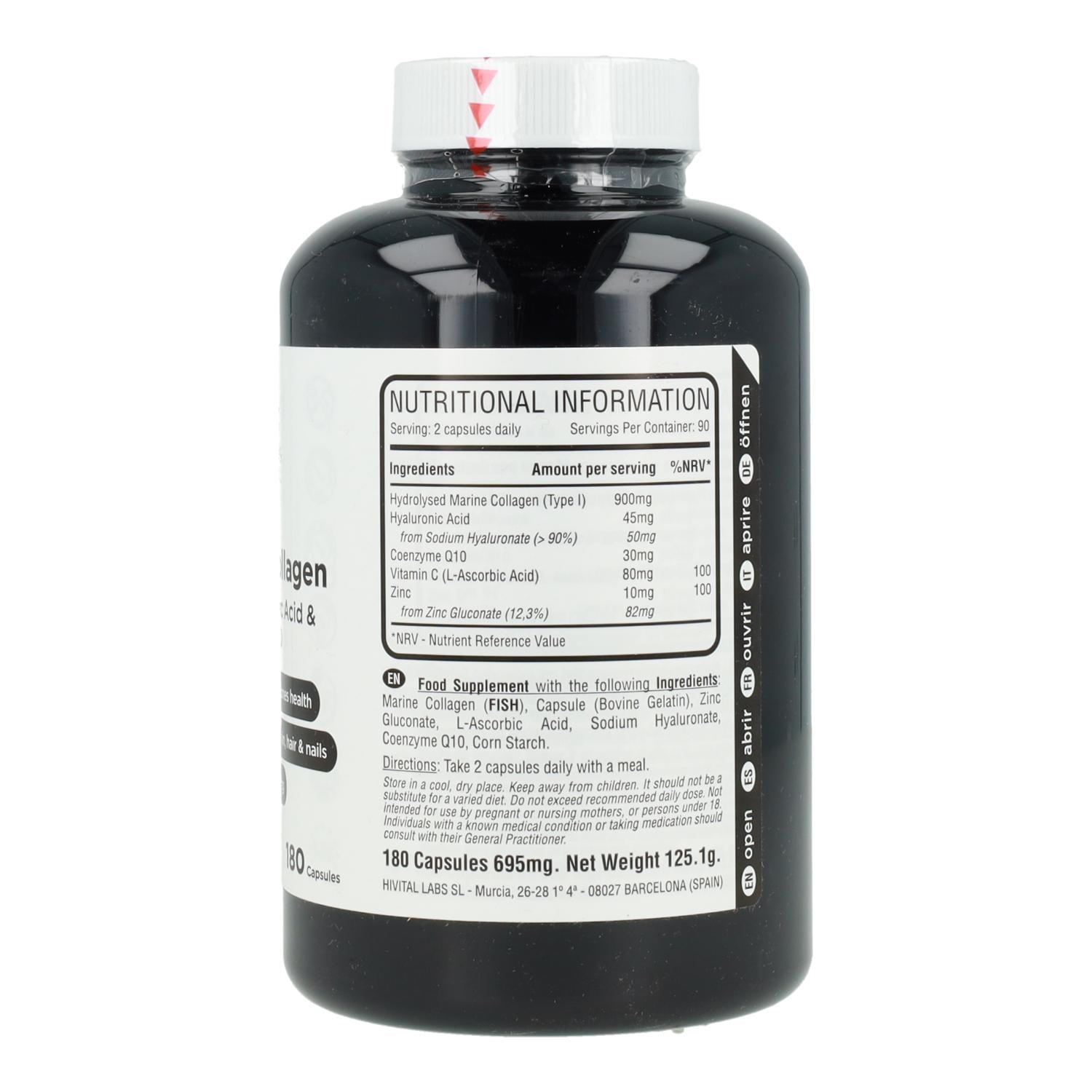 Tutte le informazioni su "Collagene marino con acido ialuronico, coenzima Q10, vitamina C e zinco Hivital 180 capsule"