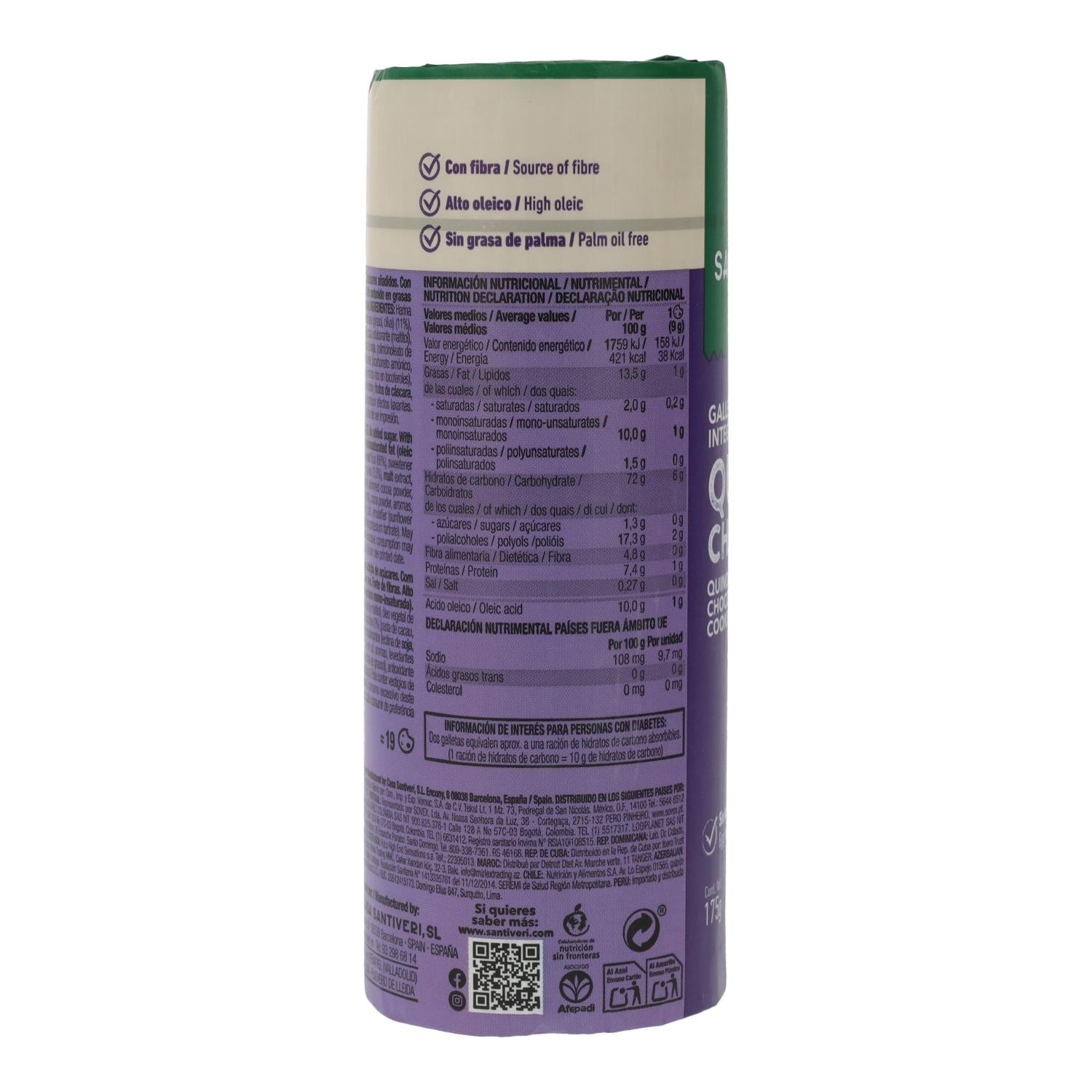 Tutte le informazioni su "Biscotti integrali Quinoa/Choco 0% zuccheri Santiveri 175 g"