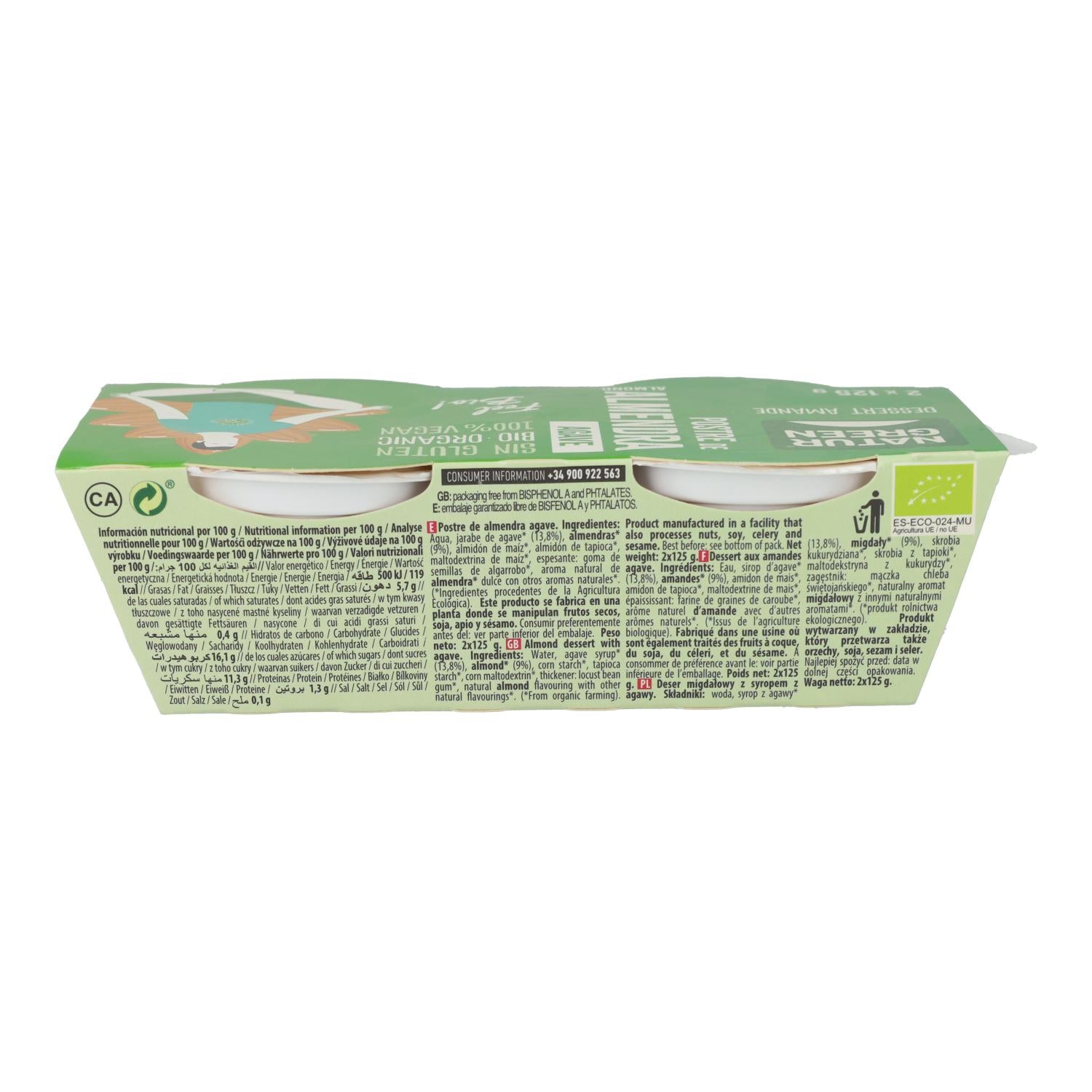 Alle informatie over "Postre de Almendra con Ágave NaturGreen, 2 X 125 g"