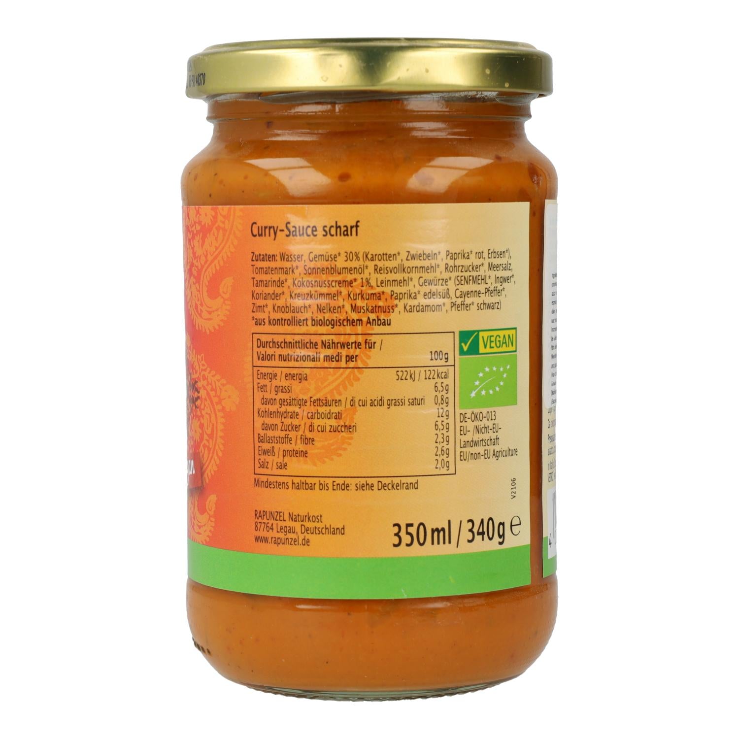 Alle informatie over "Salsa de Curry Picante Vegana Rapunzel 340ml"