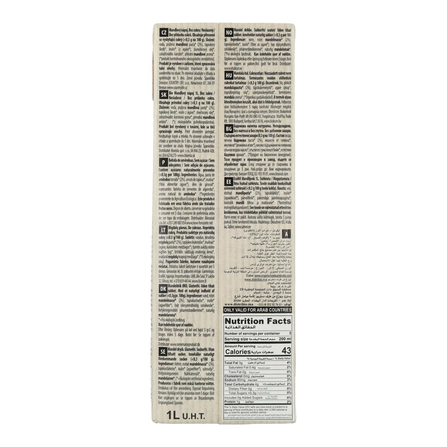 Wszystkie informacje na temat "Napój roślinny migdałowy classic Nature bio bez cukru Ecomil 1 l"
