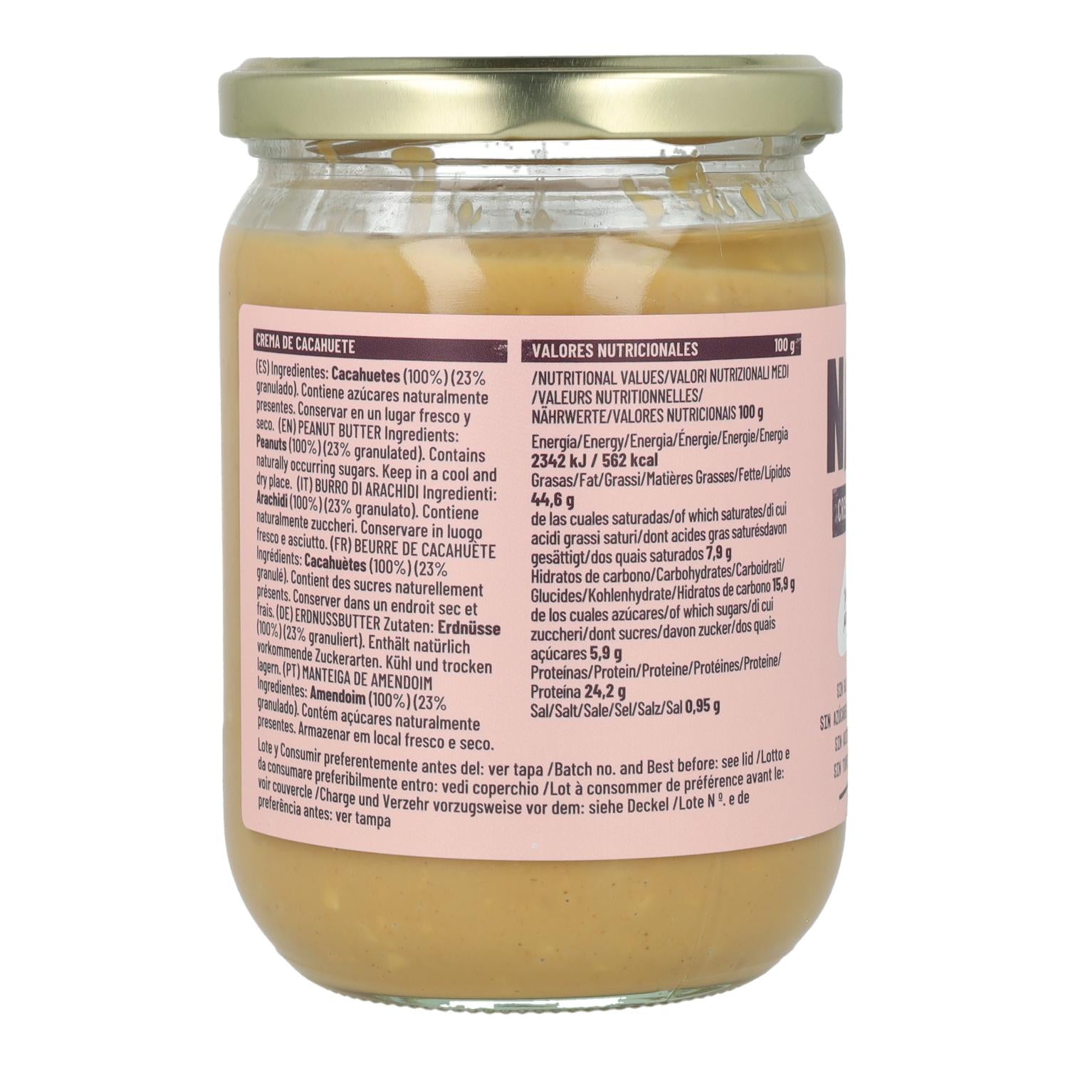 Crema de cacahuete 100% natural elaborada únicamente con cacahuetes tostados y triturados. Sin azúcares añadidos, sin sal, sin aceite de palma ni conservantes. Ideal para untar en tostadas, añadir a batidos, postres o consumir directamente.