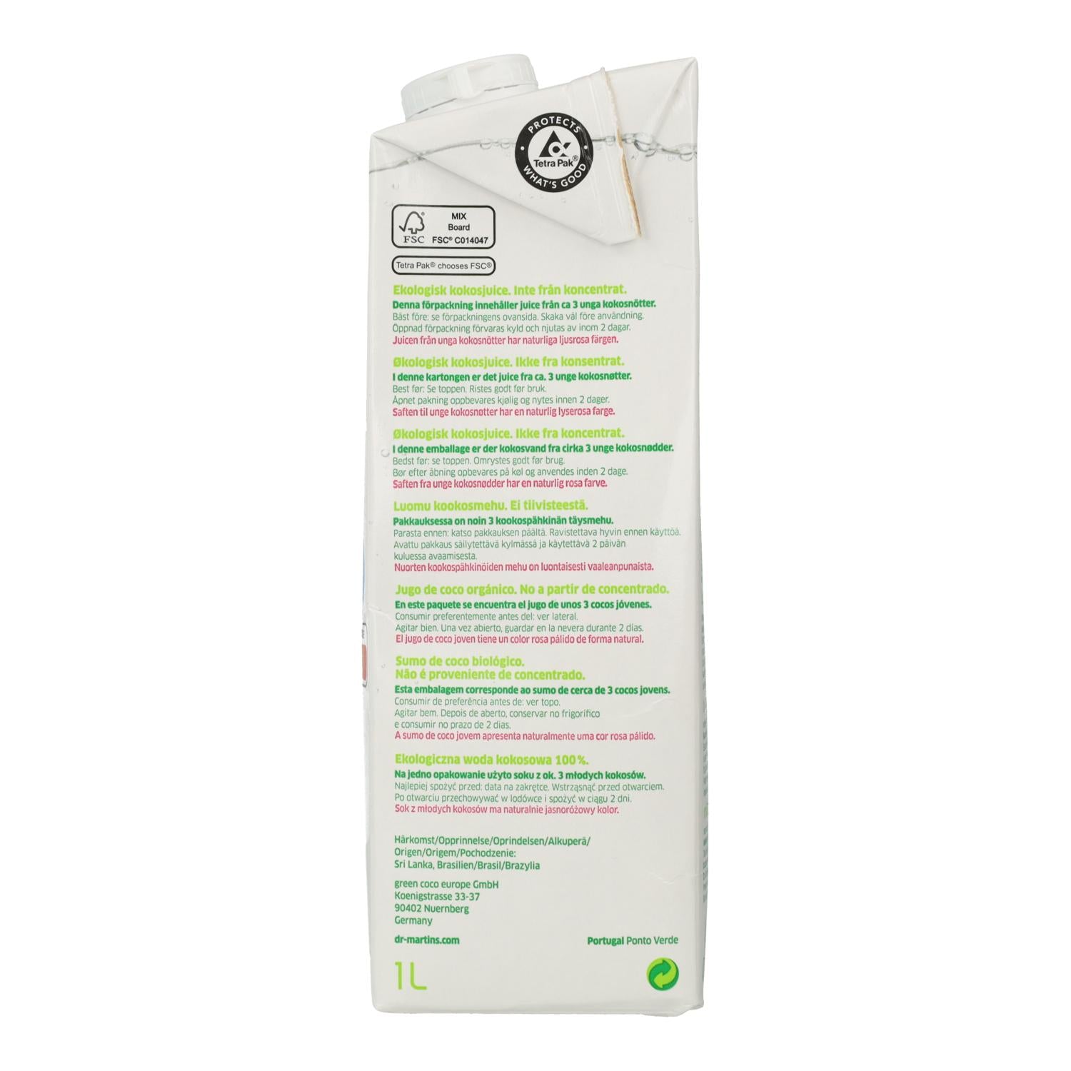 All information om "Naturligt kokosvatten Dr. Martins 1 L"