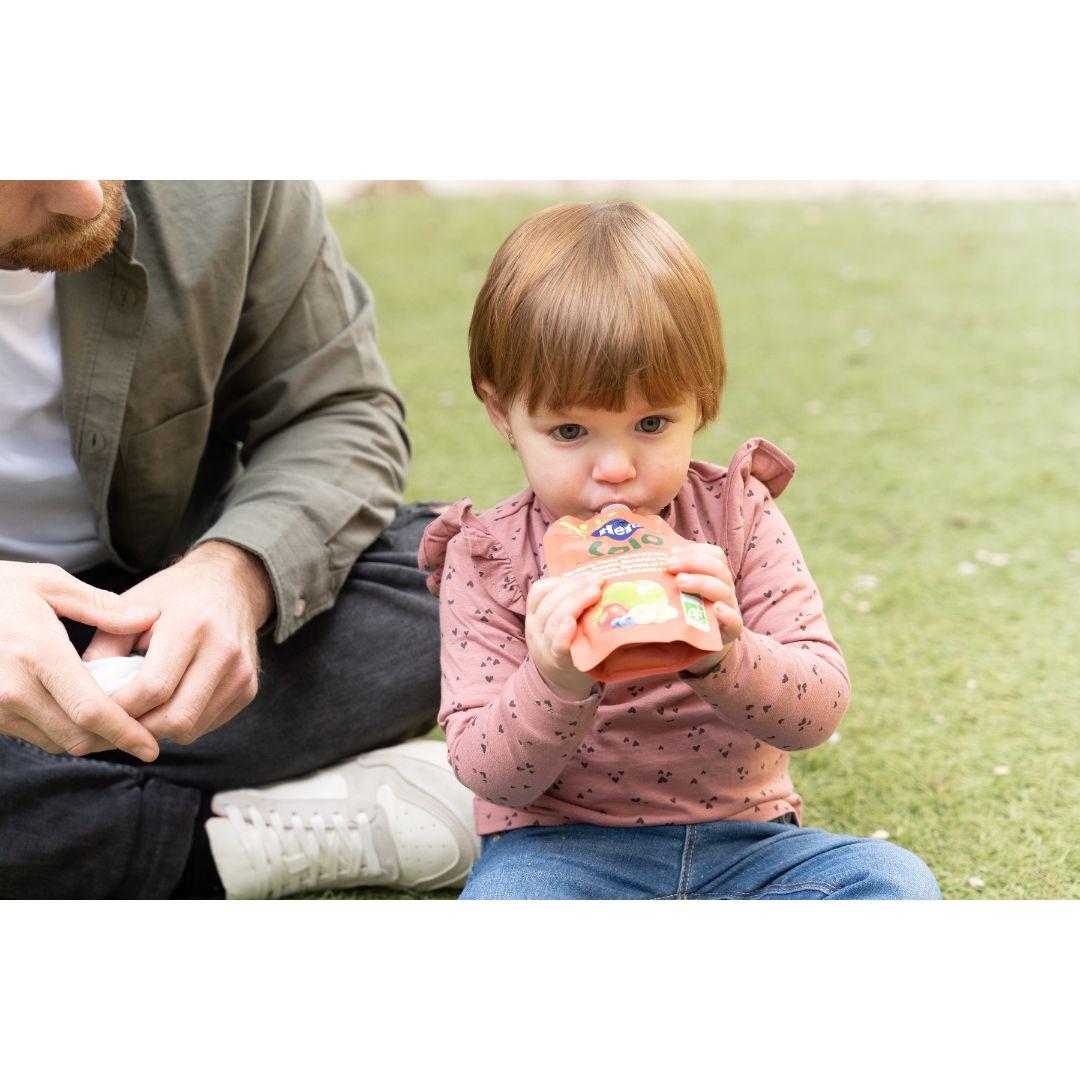 Hero Solos påsar med äpple, jordgubbe, banan och blåbär är tillverkade av 100 % ekologiska ingredienser och ingenting annat. Läckra kombinationer av ekologisk frukt som du kan ta med dig överallt tack vare den praktiska förpackningen som inte behöver kylas. Från 4 månader.
