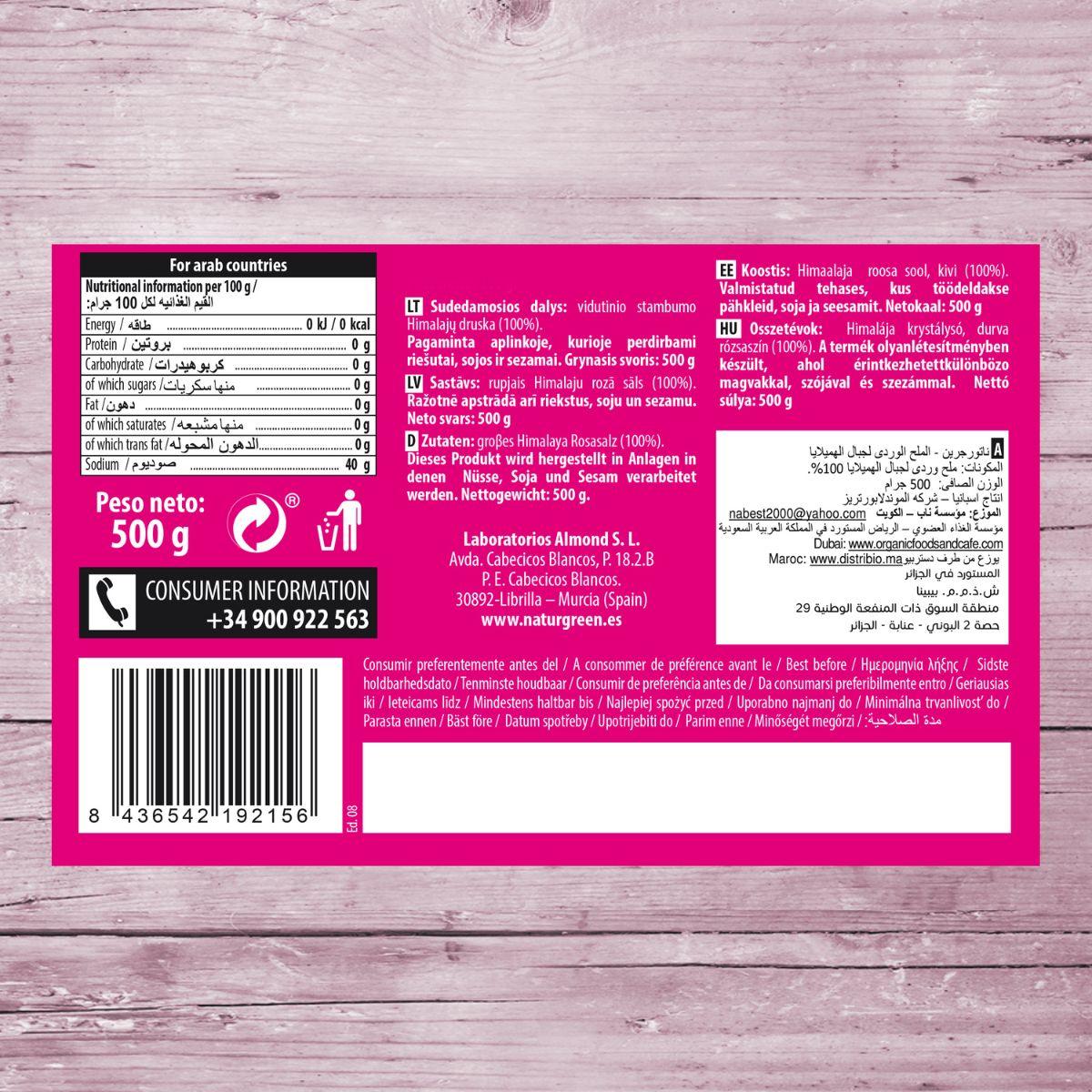 All information om "Sal rosa del Himalaya gruesa Naturgreen 500 g"