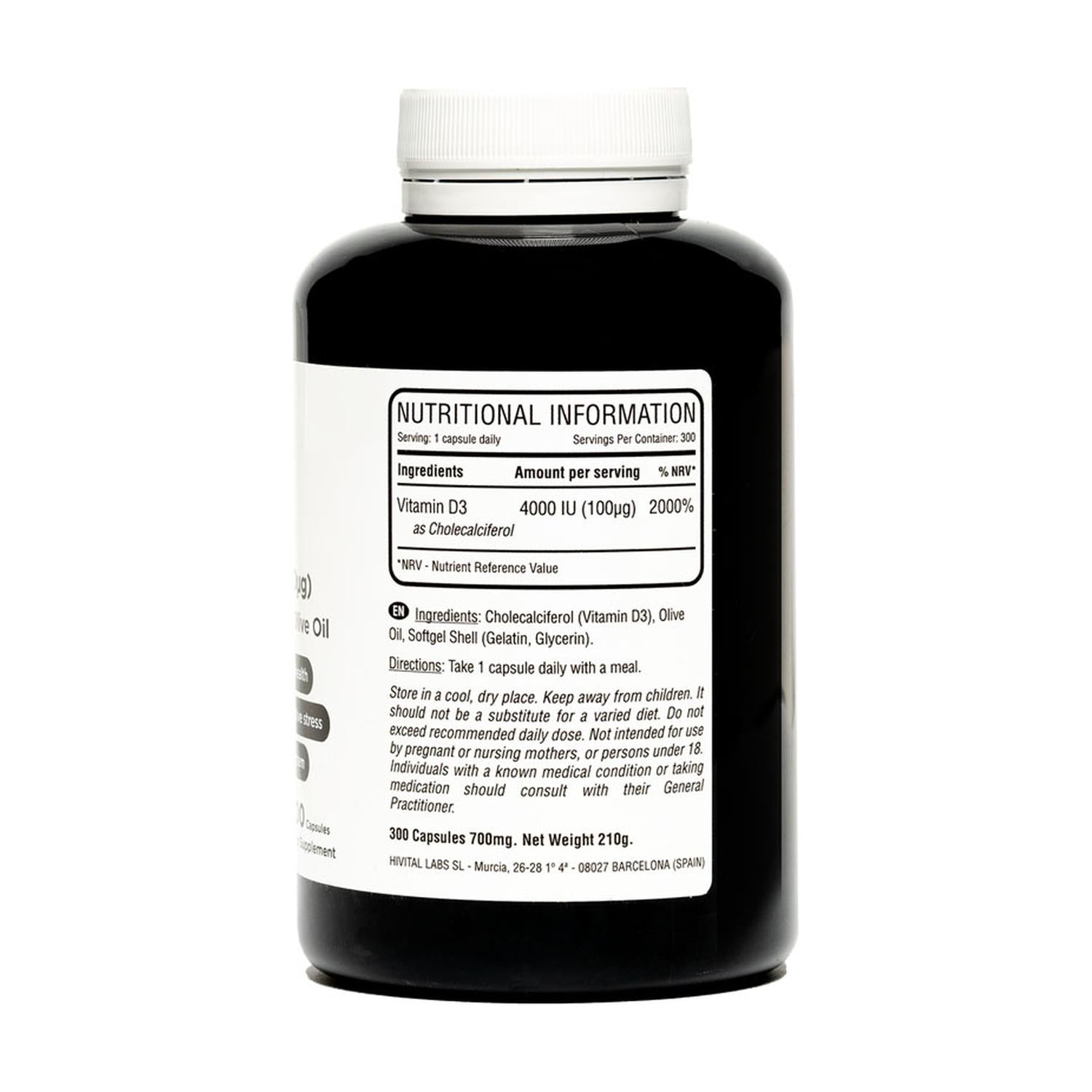 - LA MEJOR VITAMINA D3: Cada cápsula blanda contiene 4000 UI (100 mcg) de la mejor Vitamina D3 Colecalciferol disuelta en Aceite de Oliva Virgen Extra. Nuestro producto garantiza una óptima absorción y eficacia. Si tienes déficit severo de D3 (niveles por debajo de los 20 ng/ml), con una cápsula al día lo solucionarás. Si no tienes déficit pero necesitas elevar los niveles tomando una cápsula cada 5 días es suficiente.